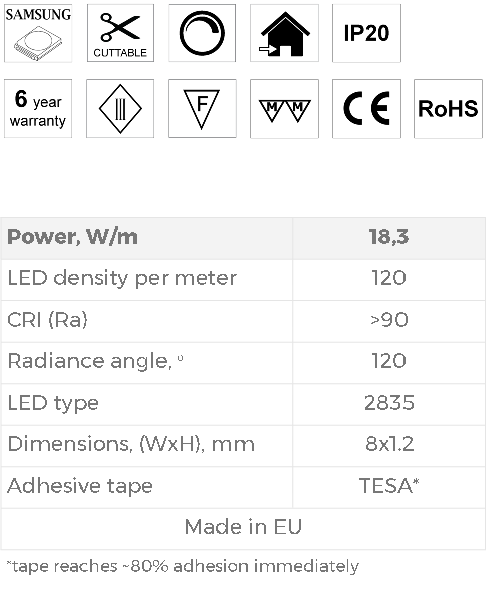 - Flexible, cuttable 18W/m LED strip, perfect for creating light installations