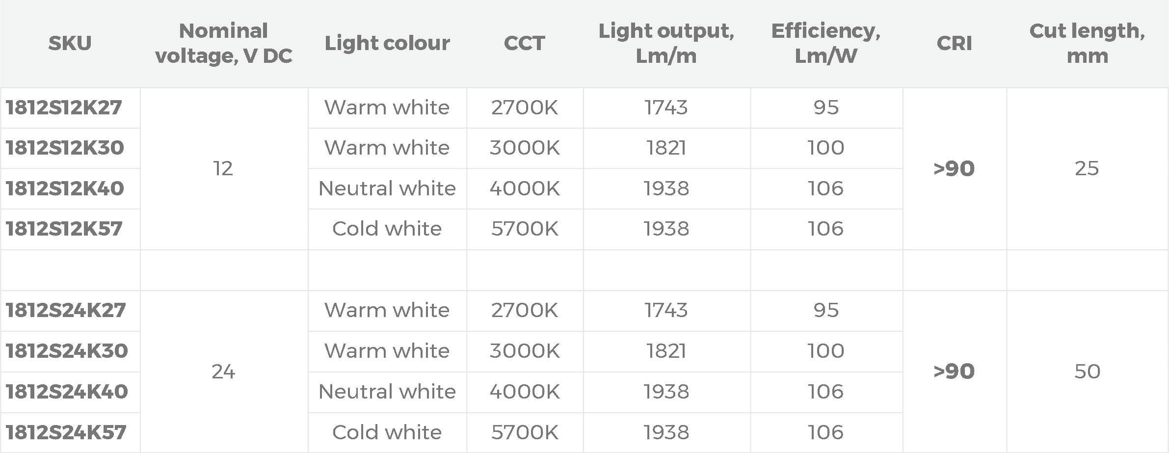 1. Cut the required amount of LED strip (see cut recommendations in Table 1).