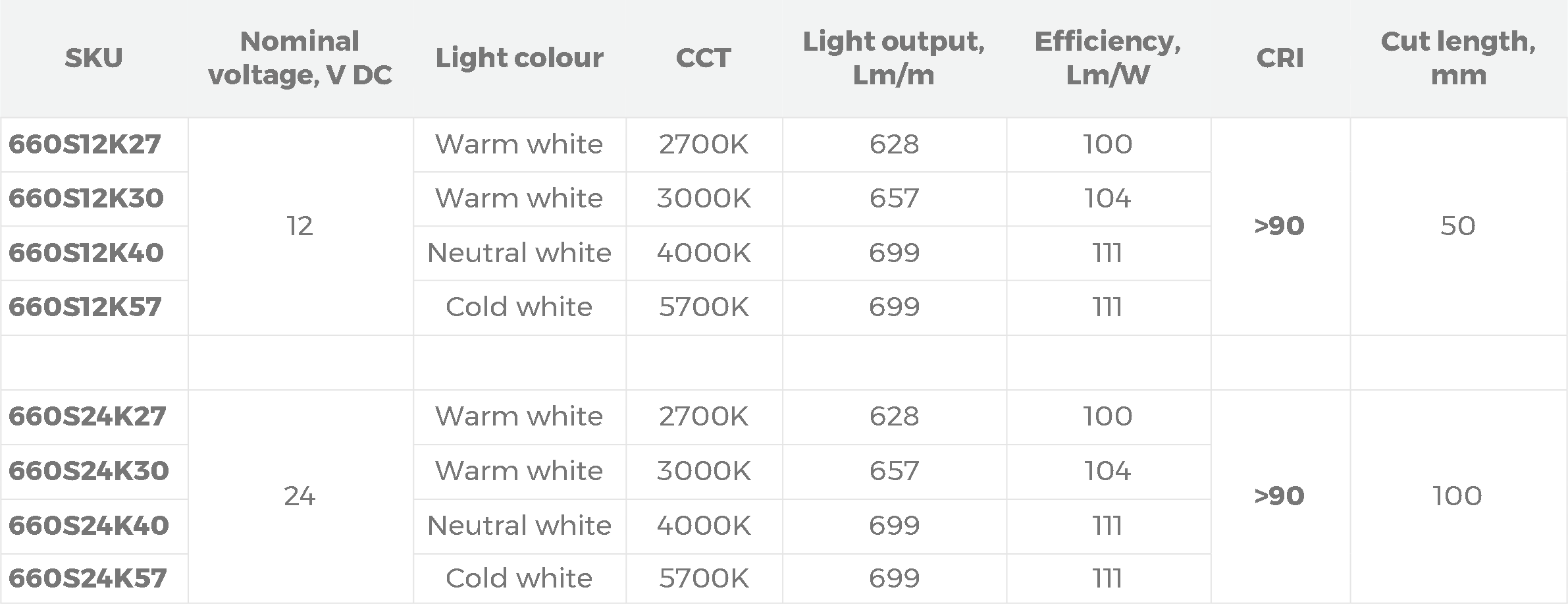 1. Cut the required amount of LED strip (see cut recommendations in Table 1).