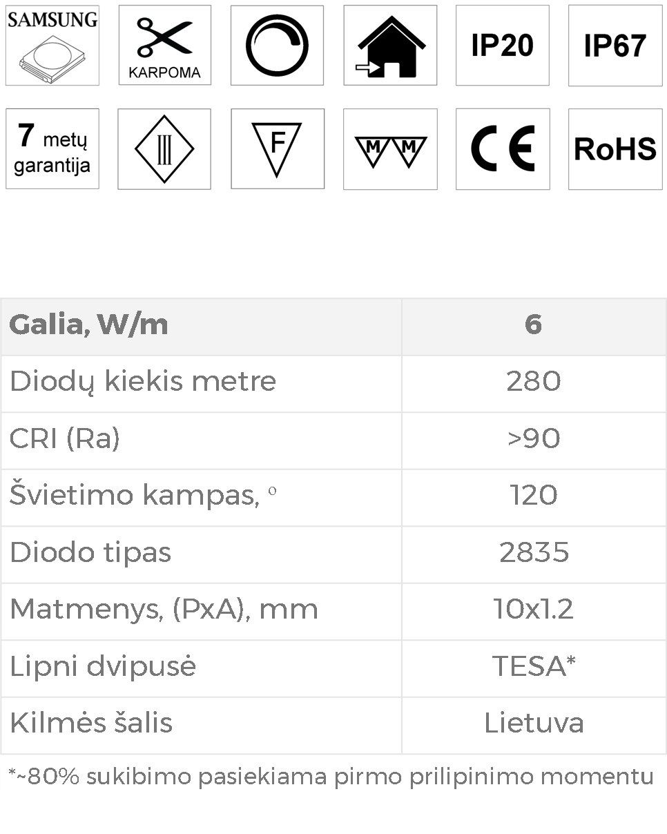 Visa informacija pateikta 1 gaminio metrui. Gaminių realūs techniniai parametrai, gali skirtis nuo pateiktų techninėse specifikacijos dėl elektronikos komponentuose egzistuojančių tolerancijų.