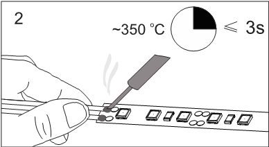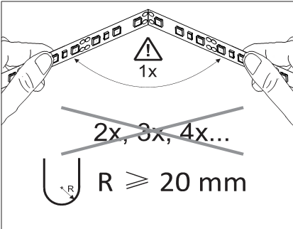 Nuimti apsauginę juostelę ir nespaudžiant diodo priklijuoti juostą. Nelankstyti