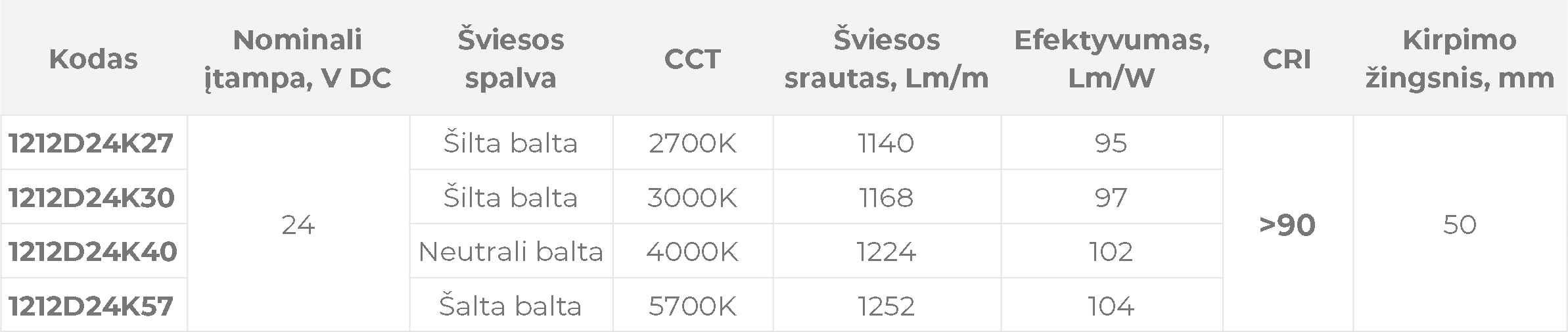 - Lanksti, karpoma 12W/m LED juosta, skirta apšvietimo instaliacijų kūrimui